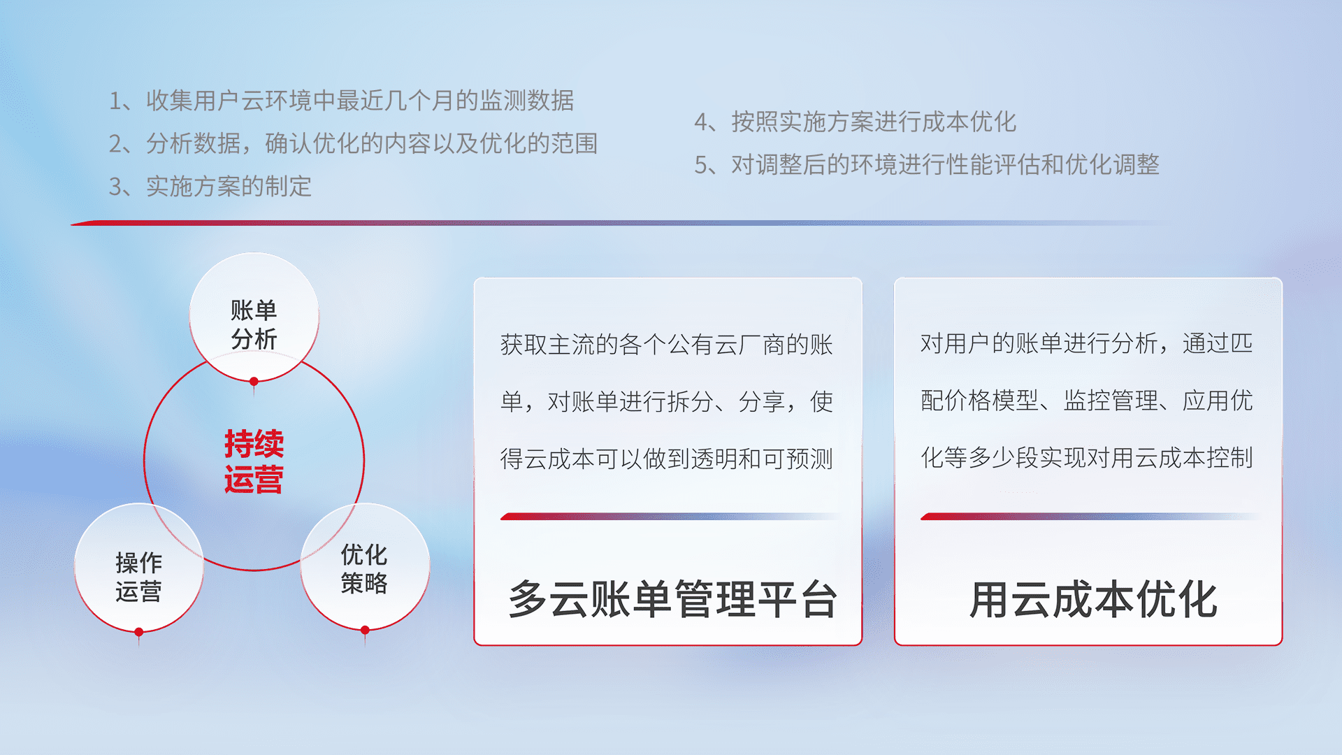 监控业务系统资源开销,,,,对资源的消耗精确计量,,实现费用的透明化管理,,,不断提升资源使用率,,,,调整资源购买方式,,,,降低资源费用成本,,,,用云成本可预测、、用云费用可优化,,云资源配额有据可依。。